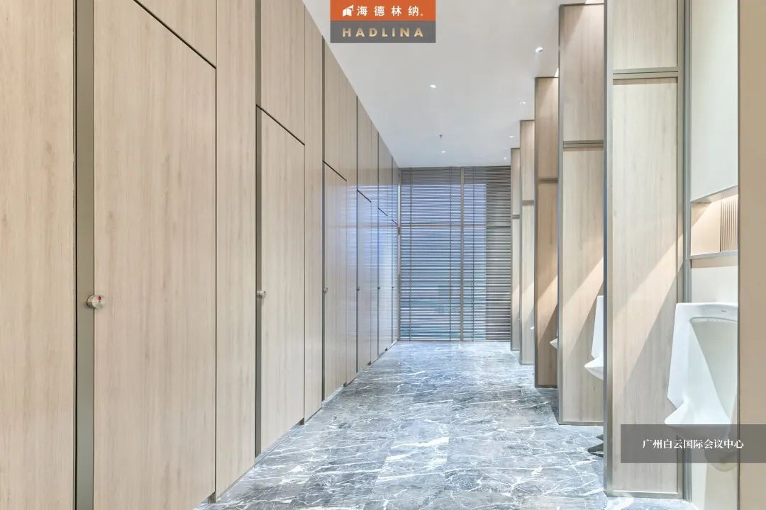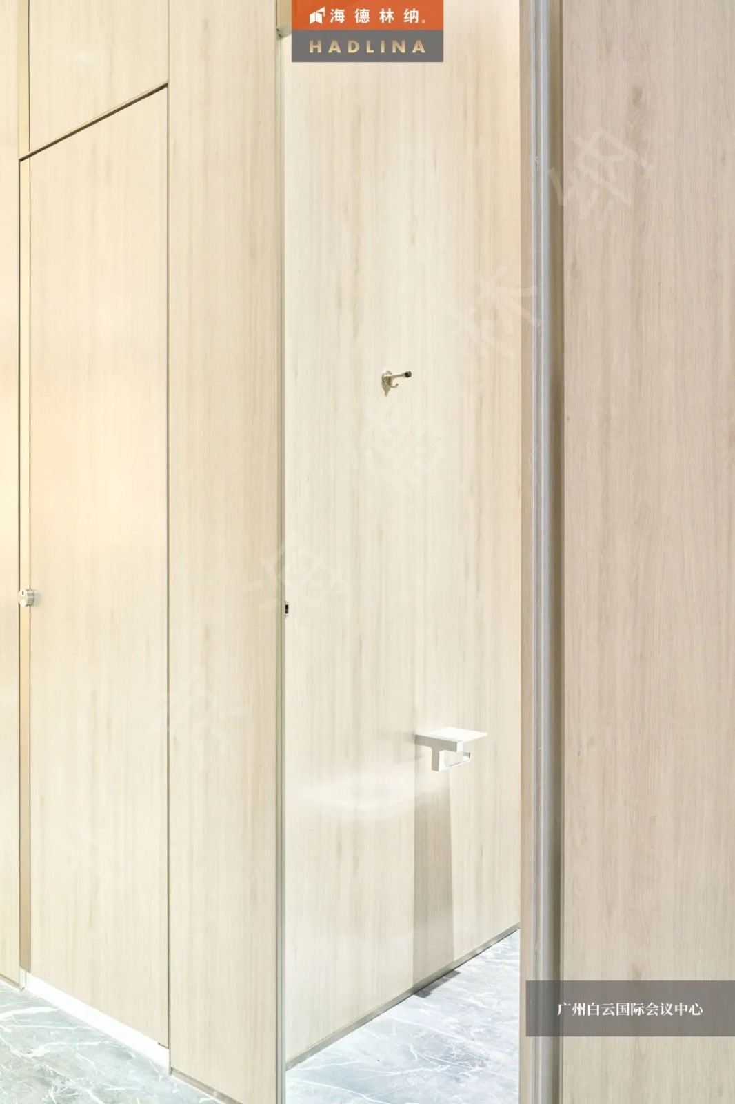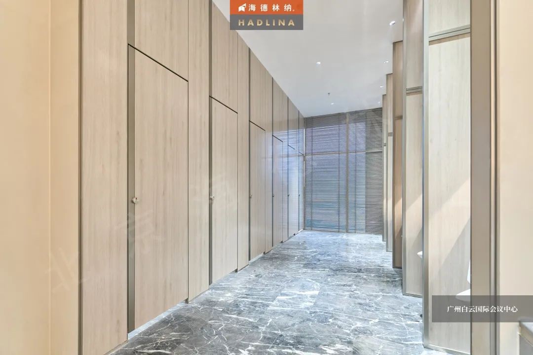 該項目采用了海德林納?天地式隔斷,將空間感縱向延伸,更顯寬敞明亮。正面搭配不銹鋼裝飾條,與大理石地面相互襯托,柔和的木質(zhì)感中和石材的硬朗,整體空間既有細(xì)膩優(yōu)雅,又現(xiàn)代時尚。