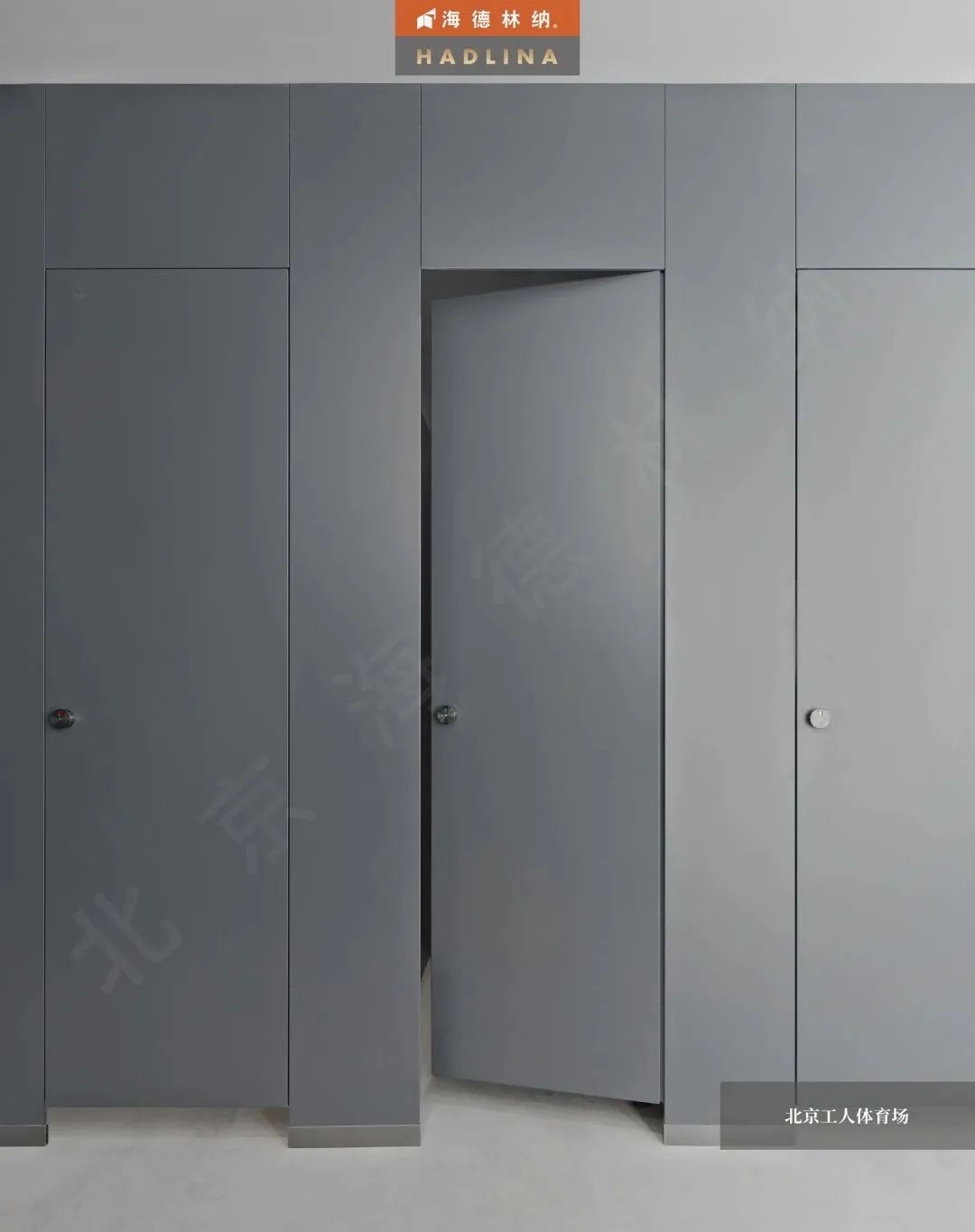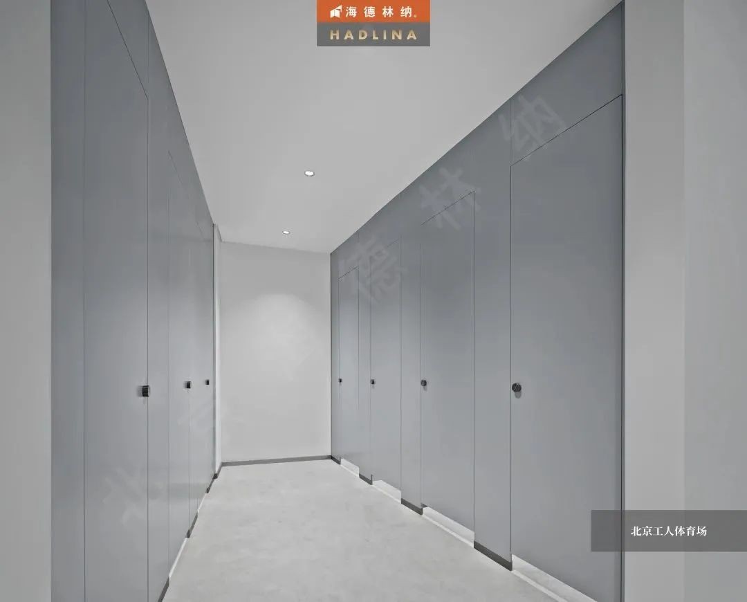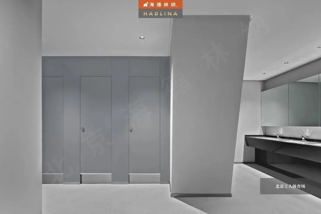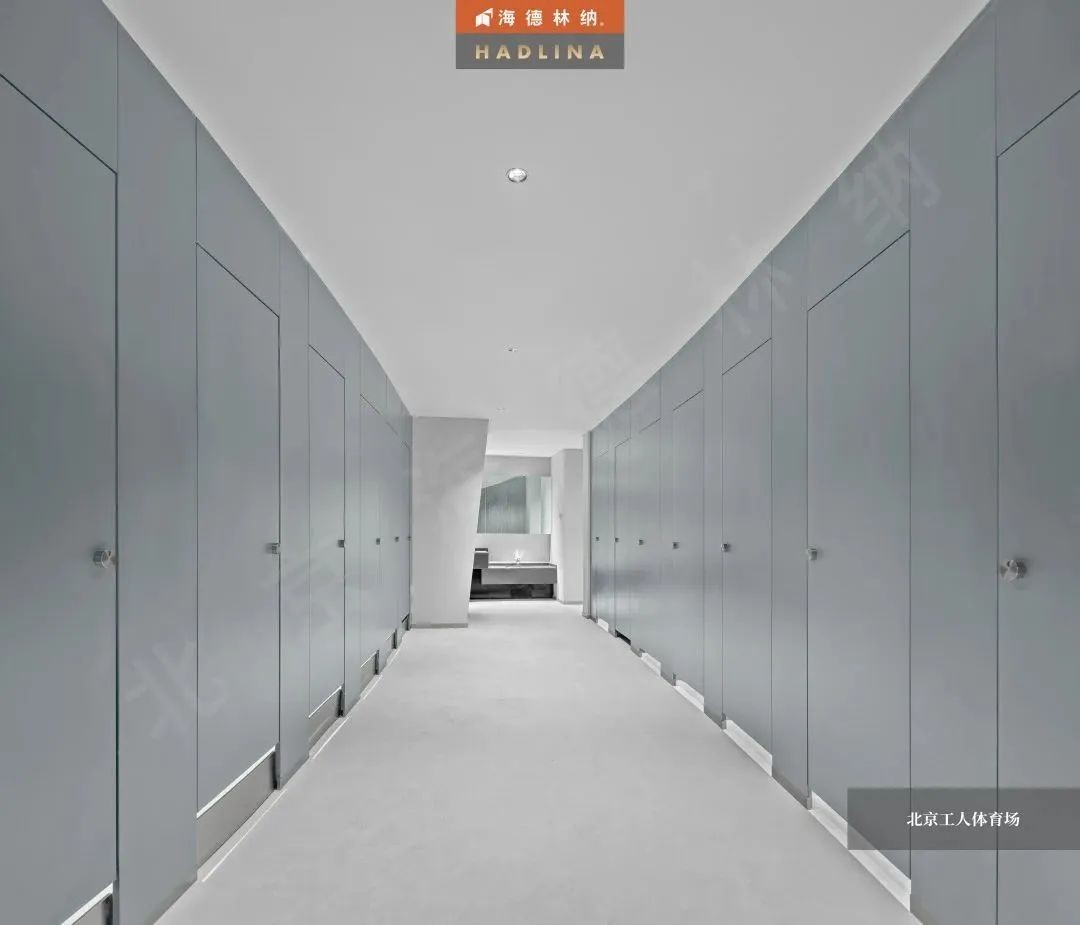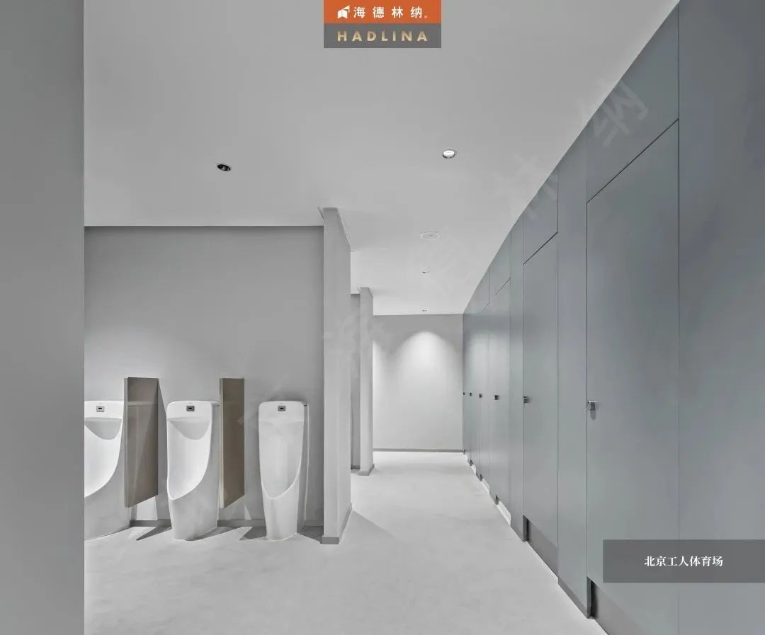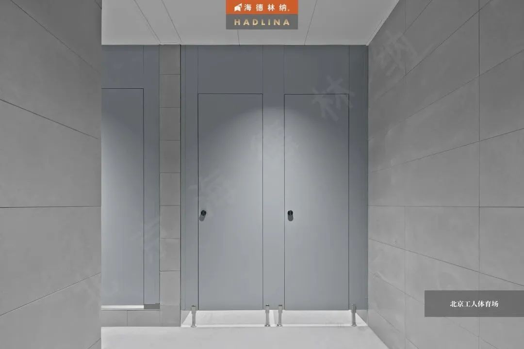 海德林納?以極高的工藝水平和優秀的產品質量,為北京工人體育場提供了公共衛生隔斷。本項目采用的是海德林納天地式金屬衛生隔斷,整體采用啟口邊型,獨家黑鈦合頁及定制款五金鎖具,共計624間。