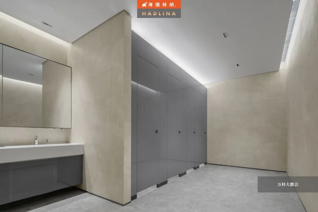科技灰色的外觀完美融入了濟南萬科大都會的現(xiàn)代氛圍。這種色彩不僅突顯出空間的現(xiàn)代感,還為衛(wèi)生區(qū)域注入了一股高科技的氣息。同時,鋼化玻璃裝飾提升了整個區(qū)域的高雅感和時尚度,創(chuàng)造出一個令人舒適愉悅的環(huán)境。